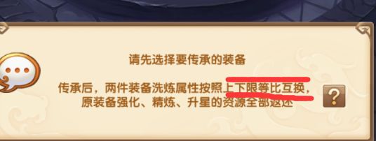 入门第一招:省石大法,我们先了解游戏的机制,找到右下角的回收按钮-装备-装备传承。由于装备传承的上下限是等比互换的,举个例子,我用一个上限低的武器(伤害加成上限2.2%)洗练好了之后直接传承给红装(就能转化成红装的上限伤害加成4.4%)那当然你洗出2.2%所消耗的石头肯定比直接洗出4.4%所用的石头要少。