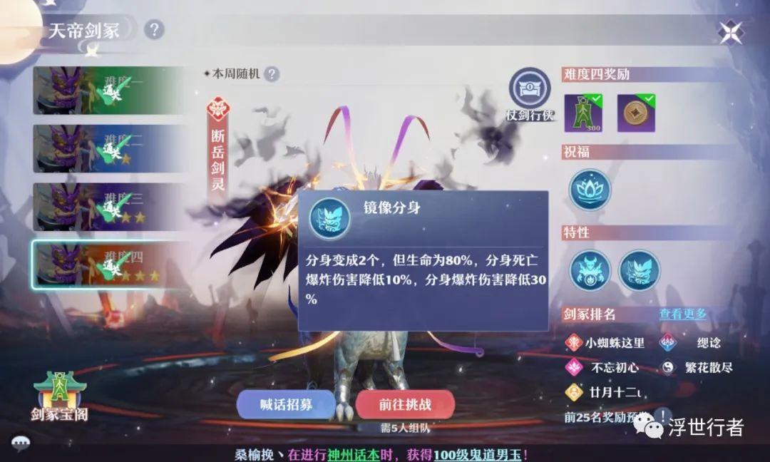 挑战玩法丨四星断岳剑灵(词条镜像分身)通关思路分享,各种阵容都有通关的机会