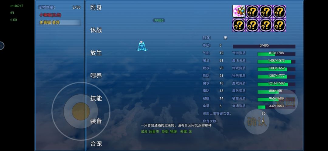 进游戏第一天,可以用sl大法合宠,虽然技能是随机的,但是属性会好一些,开局够用了