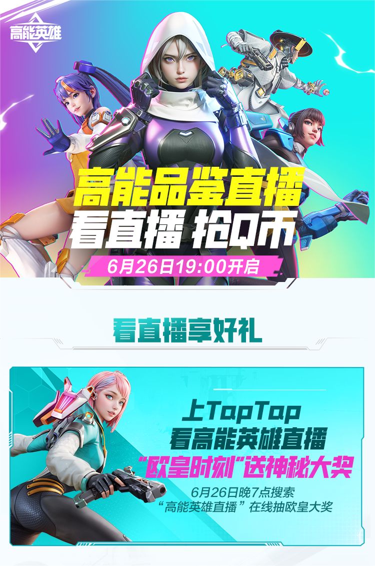 6月26日19:00,在 TapTap 搜索“高能英雄直播”,海量Q币等你来抢!各位高能之人千万不要错过哦~