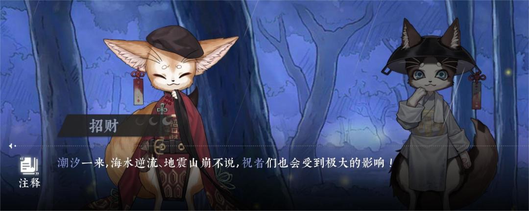 整体设置上,特别像是传说故事里的模样,搭配精美有趣的立绘,让脑海里的故事世界有了更立体的样子。剧情展示方式感觉像是过皮影戏,也像是过家家般的故事推进,人物的动态效果配合剧情走连贯性比较强(这里有缺点,后面细说)