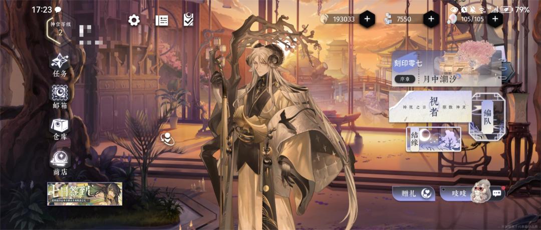 主界面背景真的很美!有昼夜之别,我愿意一直挂机!(陪伴系统!考虑一下!)界面内容比较归整,简约但不缺风雅,主副线部分设计好像展开就是故事画册。