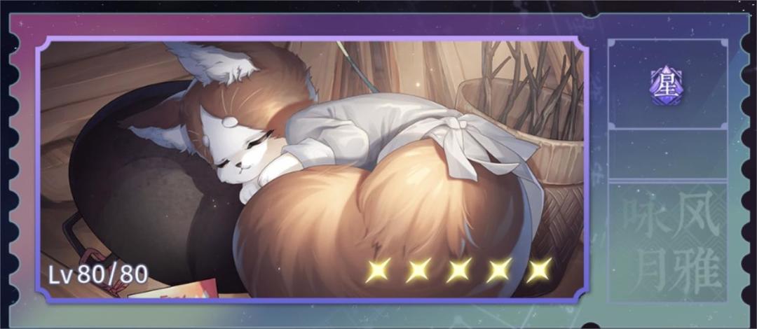 卡牌加成“背卡”(剧情卡),小狐狸睡觉的模样巨可爱!(缺点插播——哎哟,那么好看的立绘怎么可以没有全屏欣赏呢,没有图集区太可惜了)