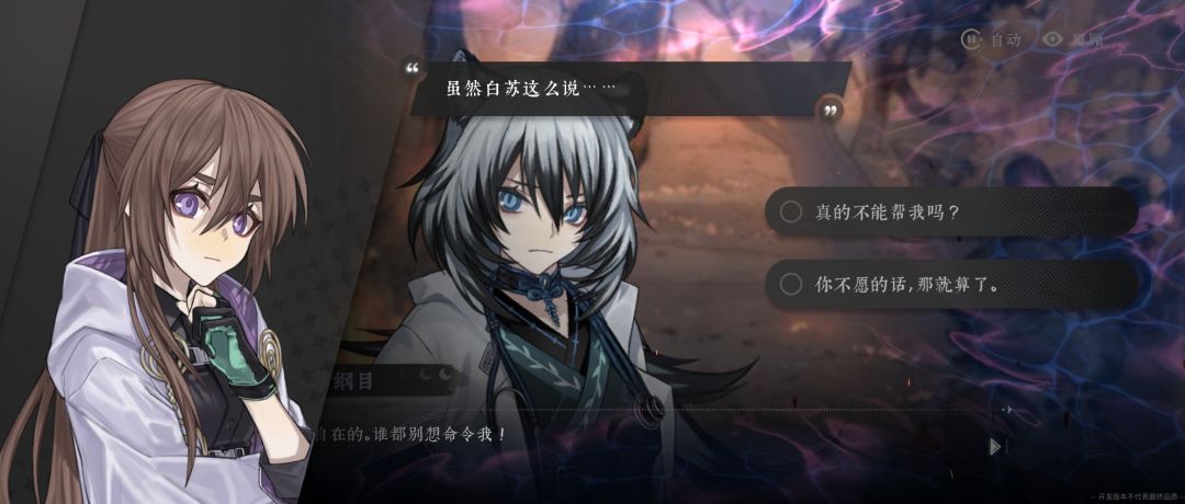 期间基本就是角色跳换,故事是在往前走没错,但代入感不强,观感节奏也不是特别好。建议还是增加场景立绘内容数量(现在也有但实在太少),不然只是角色跳转眼睛真的受不住。