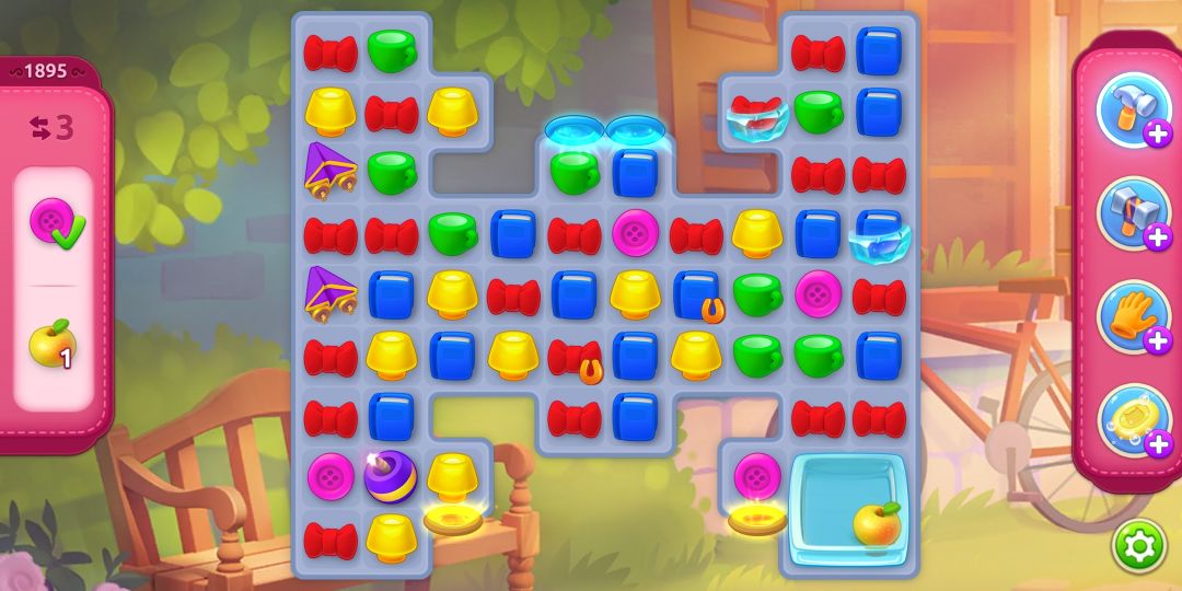 多组合炸弹会让咱们的关卡蓬荜生辉,也会快速收集,咱们需要注意的就是收集粉红色的纽扣,这个相对来说有点难,咱们可以利用彩虹球个粉色纽扣的组合,这样既省步数,也加快收集。