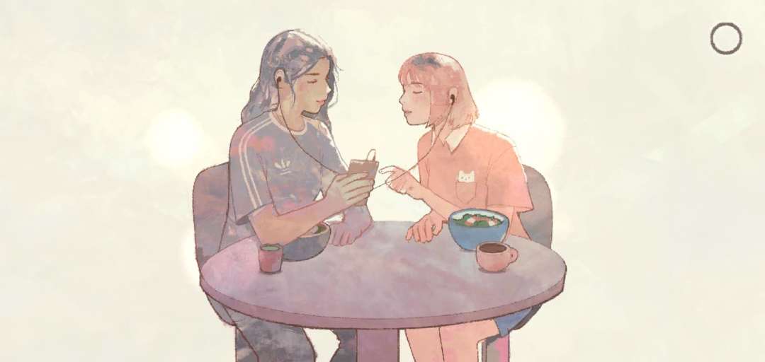 游戏的画面是完全手绘的,笔触间充满了温柔,色调也非常温暖。梅是活泼可爱、喜欢可爱小动物的画家,欧格丝是高大温柔、毫无软弱的音乐人和程序员。服装有所区别的作者很用心地用了粉色和褐色突出了他们各自的性格。*