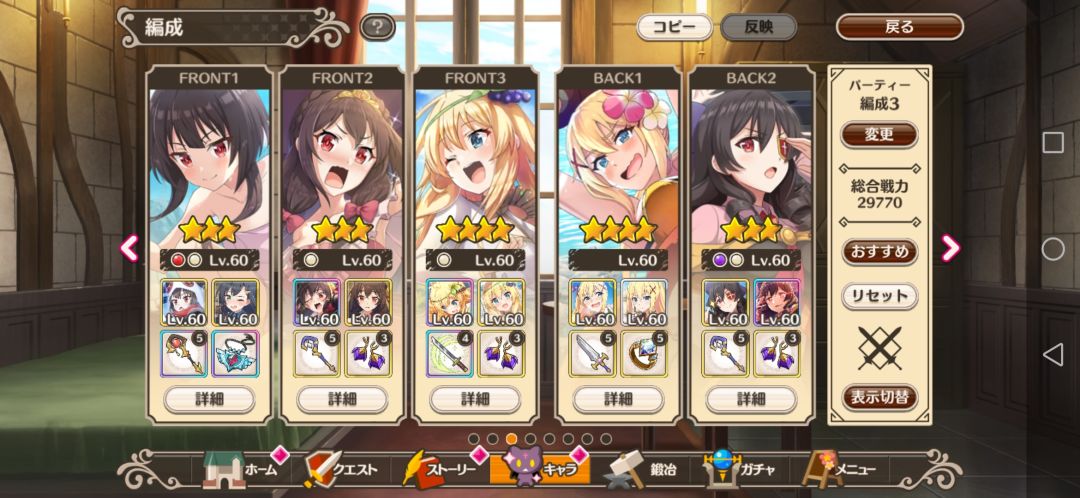 3个送的角色,应该算低配吧,这是运气型阵容(达克尼斯开了嘲讽boss也会打别人),装备只要打小怪不吃力就行。