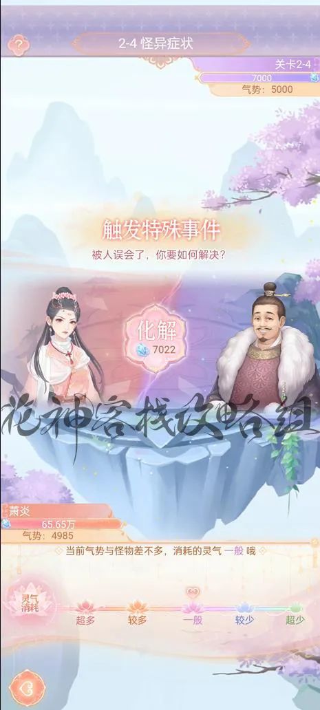 进入剧情战斗,顾九思的气势高于我方,如果直接化解会消耗较多灵气。我们可以通过升级已经获得的羁绊,提升气势,进而减少灵气的消耗。