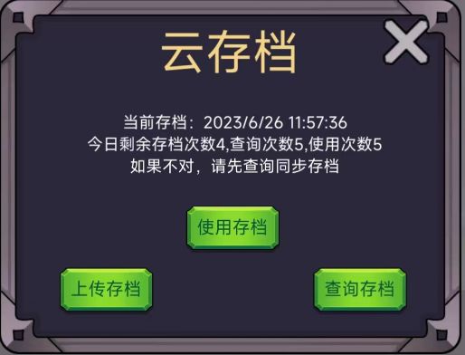 上传存档,不解释,使用存档,就是下载存档,查询存档,更换设备时使用。