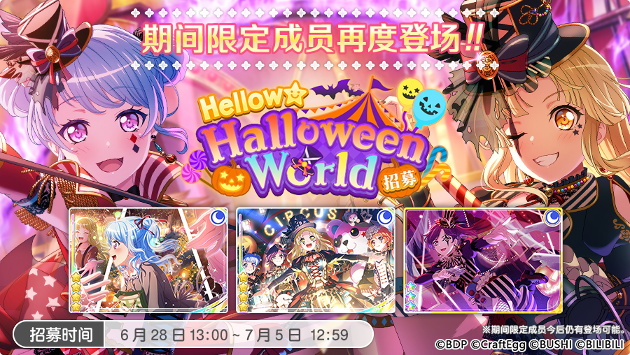 1.再度登场的「Hellow★HalloweenWorld招募」期间限定成员仅会在「Hellow★HalloweenWorld招募」登场,且在招募结束后不再出现在其他招募中。