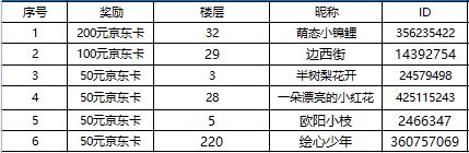 咱们将从成功参与活动的玩家中,抽取以下玩家送出如下奖励!