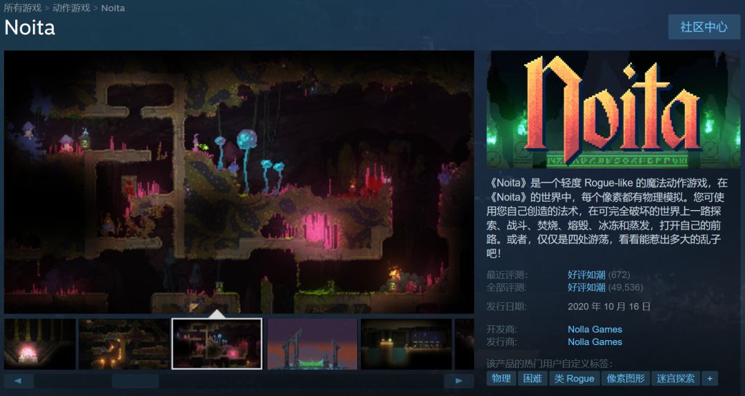 沙盒创造冒险,总不能变成死水一潭了?直到最近,我看到《Noita》这款游戏,熟悉的像素风格,层层叠叠的冒险地图,多样化的装备构筑,这就是我的梦中情游。