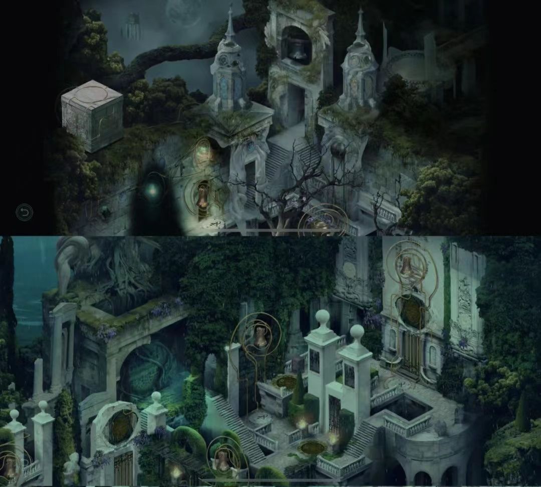 游戏一开始非常容易,因为有时候你只需要敲几次钟,帮助神秘的主角通过某些路径即可,甚至有人可能会怀疑这个游戏的难度叠加上去也不高,因为敲钟、迫使角色接近宝箱、获得钥匙并把他引到一个锁住的大门前,听起来怎么都像是小孩子才会玩的游戏。