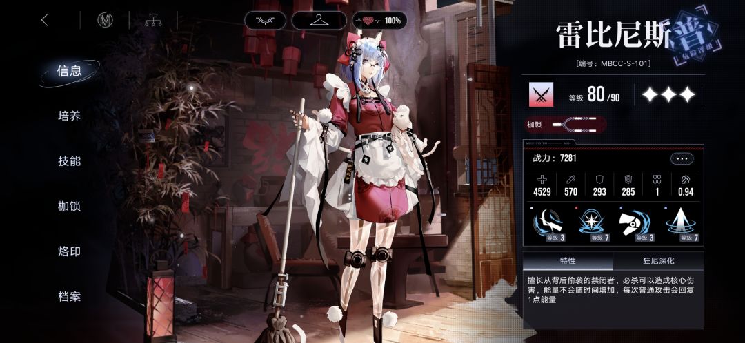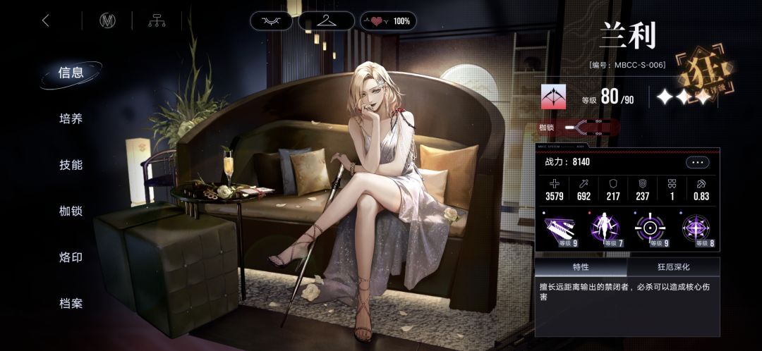 破核工具人的代表二,二阶之后,核心击破后可以直接刷新必杀,二枷锁的背刺可以快速回能,4枷锁之后一个必杀只要17点能量,还能够存两个,属实是占着普级的卡面,有着狂级的机制。