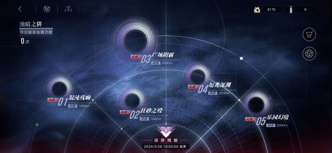 简称井或者下井。通关一次就可以扫荡了,每天能打一次,获得的样本可以在商店兑换开启与升级角色专属烙印的魂识印记