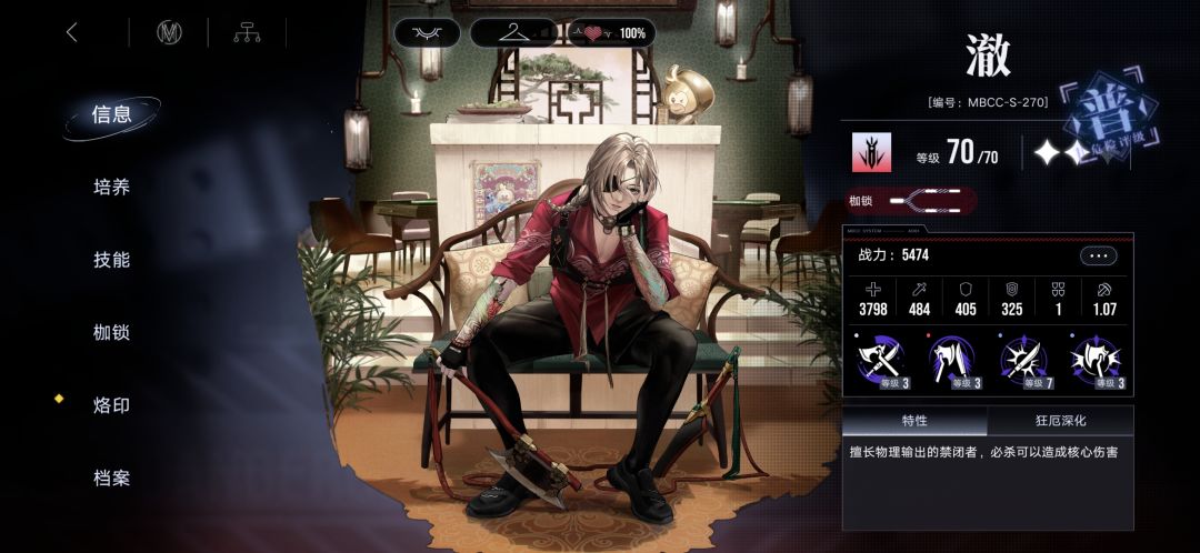因为专烙的存在使其配合高血量的坚韧系角色,可以打出爆炸伤害。但现在在暗域里面被频频针对,从主C变成了插件。对自身的等级以及烙印等级的要求不高,但对技能与专烙等级要求较高。如果萌新和盾一起养的话,可以很轻松的从低危炸进高危72W,副作用就是容易炸太爽了忘记练法队以及其他物理C导致进暗域坐大牢