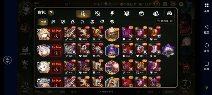个人建议把装备扒了,练出暗法和木偶继续推图t用水奶(木偶是打boss手操,自动不要用),如果缺装备,就快速做完龙讨伐任务开下一个,水或者木讨伐,里面还会送一套生命一套攻击,然后继续推图,推图给的奖励很多,一章也有一片叶子。