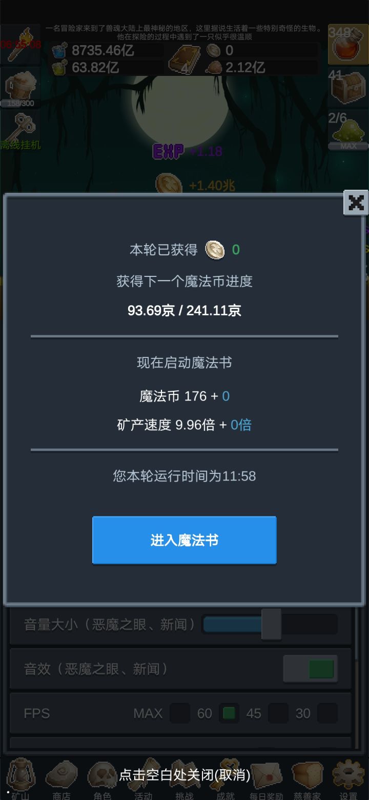 一定要记住,在狂欢时候点击十倍金币,全靠这个获得金币升级,得魔法书点