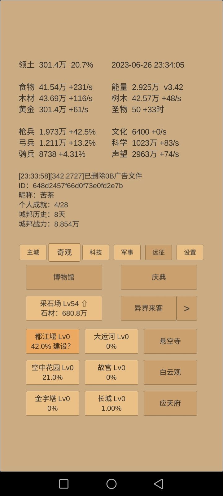 接下来目标就是科技升到14级建筑学。解锁第三个英雄小小需要75级采石场。然后升10级军训再开军营,已经囤3000万声望了。