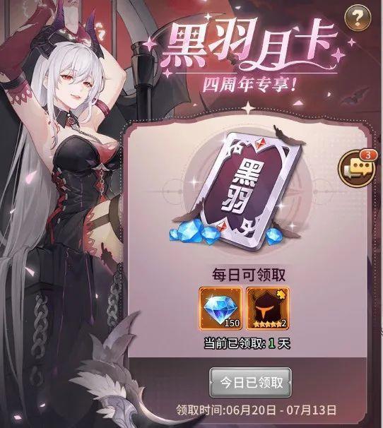 【黑羽月卡】:三十天内每日可领取钻石与随机英雄碎片。
