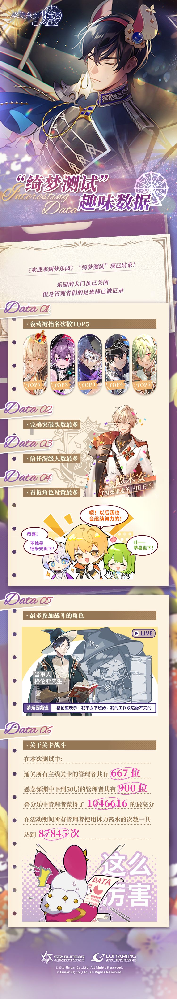 “绮梦测试”已经结束,但管理者在乐园内留下的足迹已经被我们记录,这份记录中是否有你的身影?一起来看看吧~