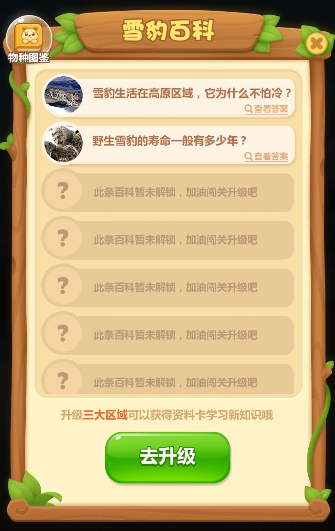 2、守护雪豹关卡花:集齐九张物种卡即可获得