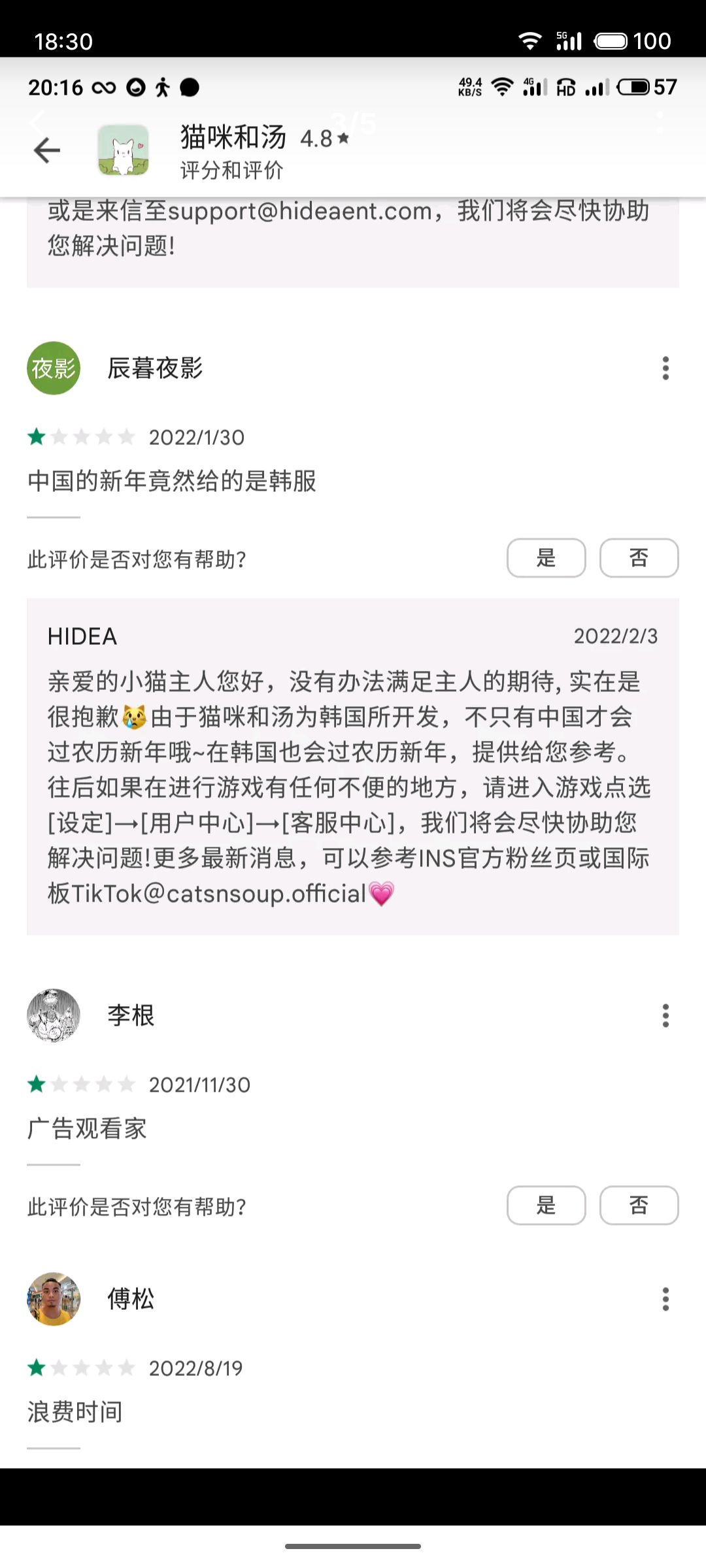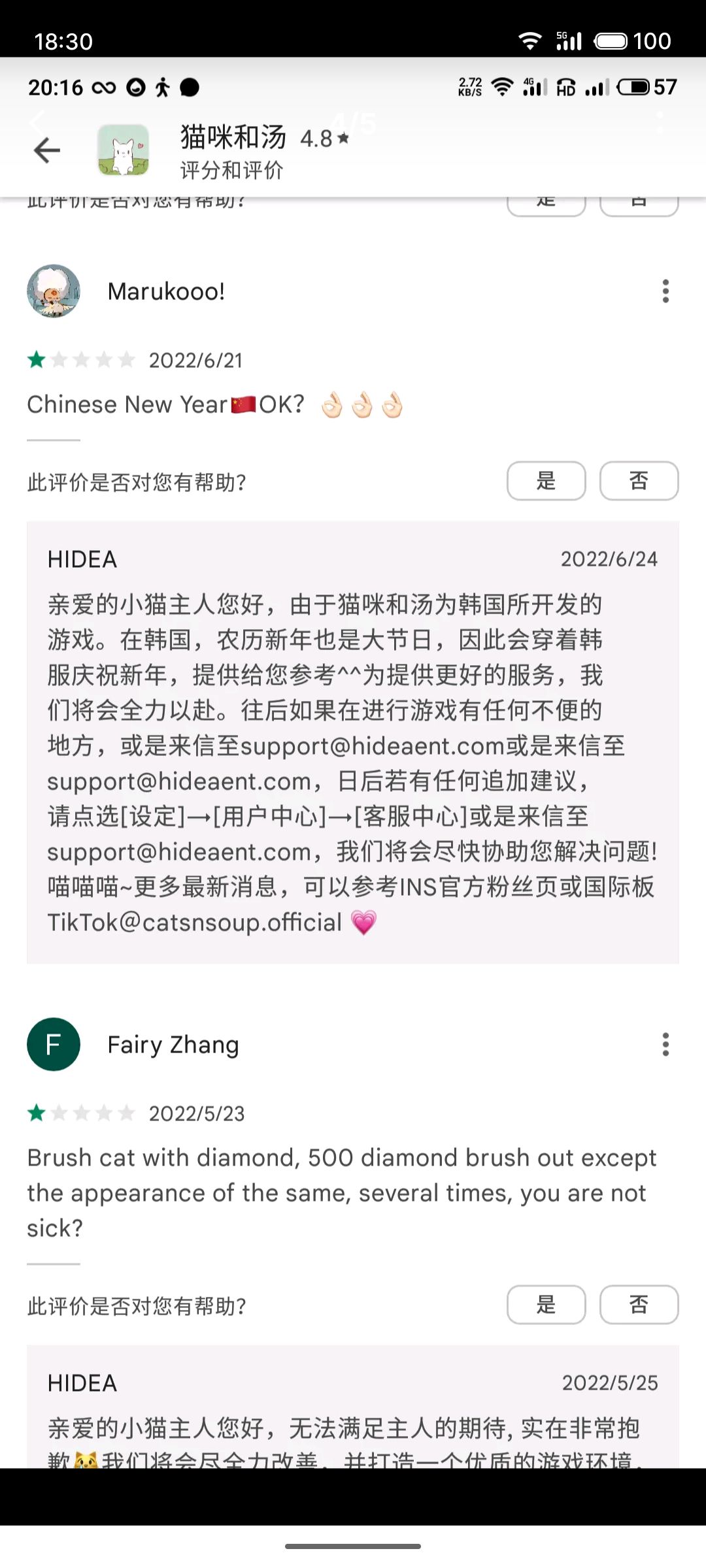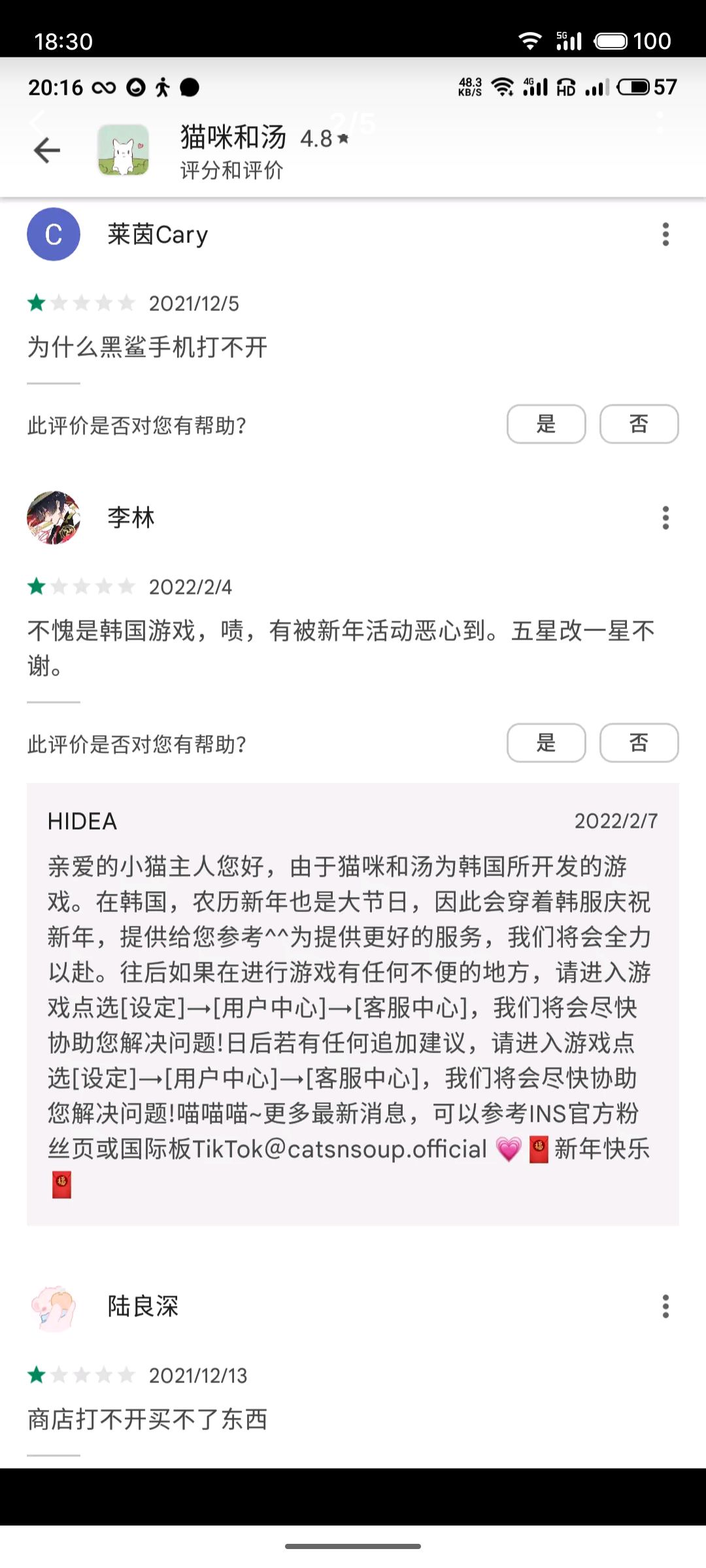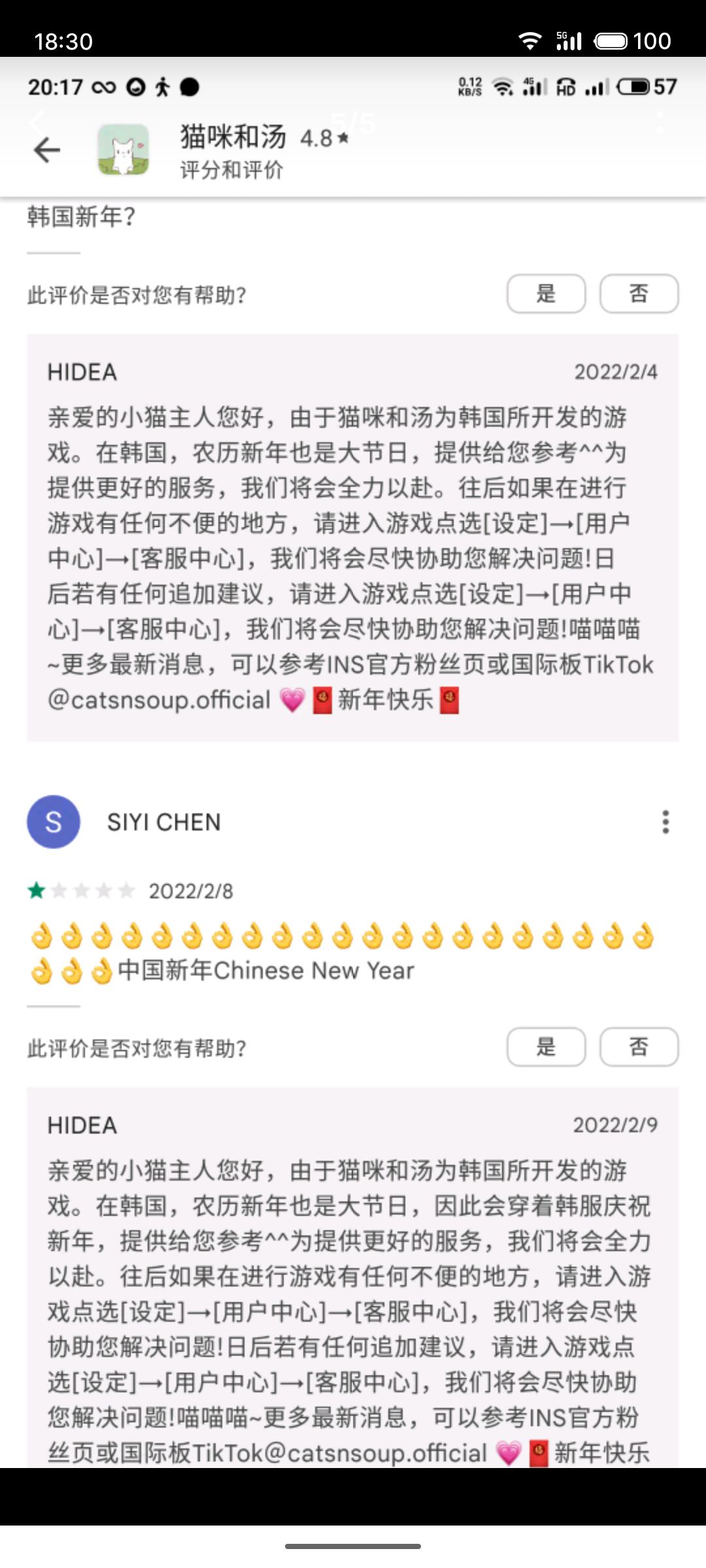 我虽然才玩,玩的不久,但我还是要说一句干的好,工作室加油,猫汤游戏工作室出的各个活动都在恶心国人,我才没玩的,猫汤很好可惜摊上了韩国公司,为了这个游戏我又特地去下载了猫汤,后面评论也是我发在tap猫汤那里的,我又重新截图一遍你们看吧
