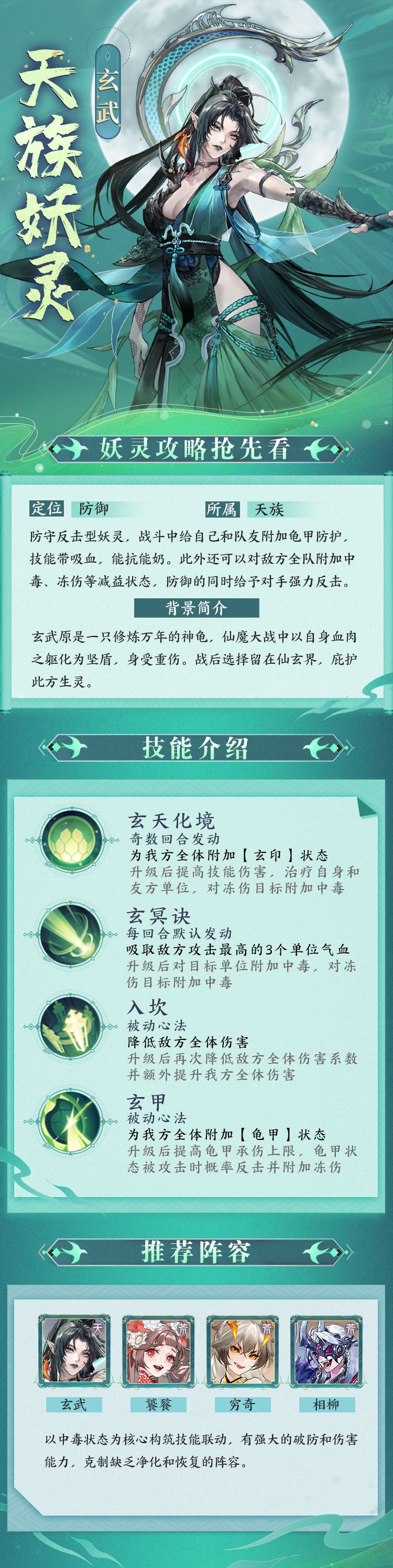 玄武是防御系妖灵中的六边形战士,今天山鬼给大家带来她的攻略情报。