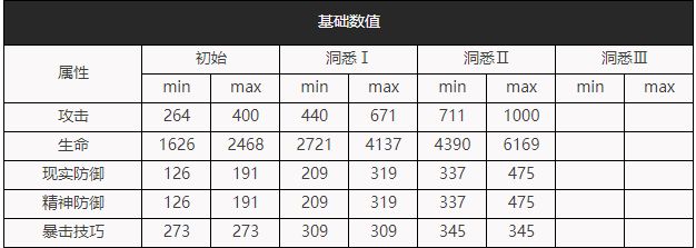 作为一名六星输出角色,未锈铠的攻击力一骑绝尘,这奠定了未锈铠在所有六星中成长属性第一的优势。未锈铠作为现实创伤输出的角色,却拥有着极高的精神防御。根据未锈铠的五维可以初步断定,未锈铠在拥有者极硬的身板同时拥有着强大的输出能力。至于未锈铠是否是我们所初步断定的那样,还是要根据技能和洞悉被动结合起来探讨。