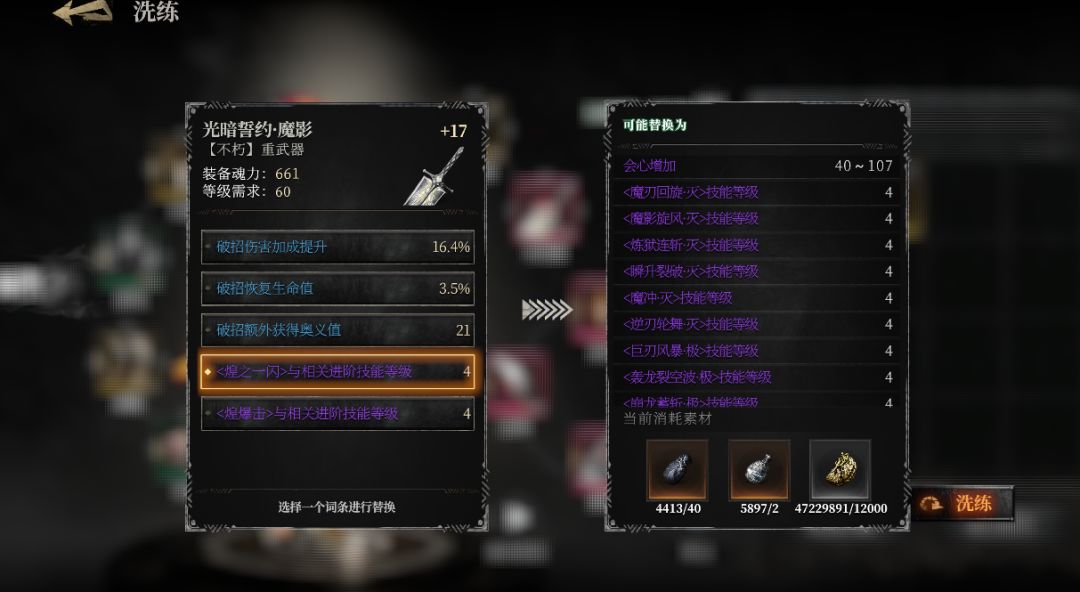 ps:【洗练】每件装备只可以选择一条来进行洗练哦~请继承者们谨慎选择~