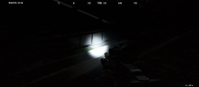 接下来我们再聊聊这一模式下的一些环境变化。雾天的北部山区能见度大幅下降,与农场不同,北山野外地势高低起伏较大,森林密布。使用战术手电能一定程度上改善近距离能见度,尤其对清理室内十分有效,但在远距离效果不佳,同时也非常容易暴露自身位置。