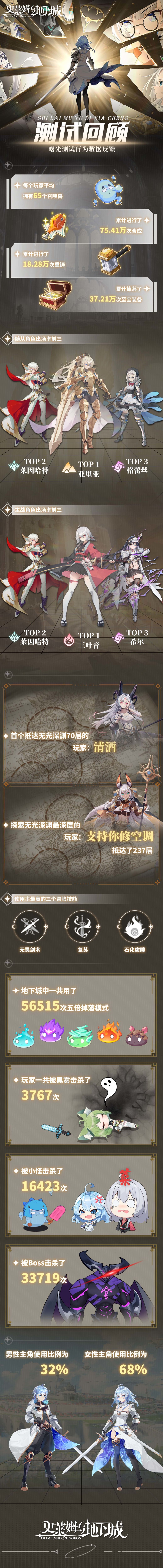 最受欢迎的主战角色、首位抵达无光深渊70层的玩家,探索无光深渊最深层的玩家、使用率最高的技能