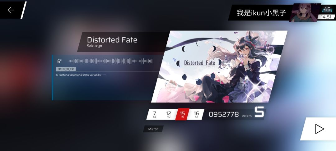 目前IN最高分打了95w多,底力不足阴游人(emo了)