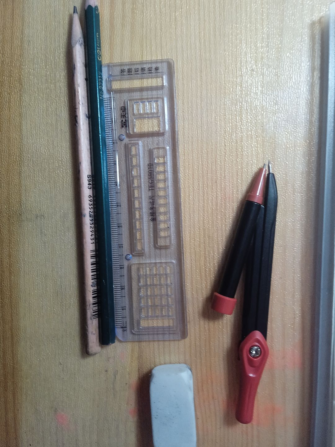 本次出战了HB铅笔,2B铅笔,圆规,橡皮,均有不同程度的战损(