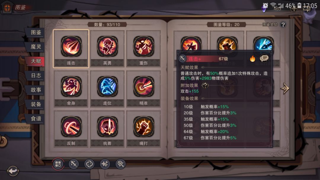 连击:普攻后追加特殊攻击,伤害低于普攻,但可以触发各种特效。任何流派都可以用的神技!不管是连击增伤还是增加印记叠加效率,就算是反击普攻也能触发连击。除非你不普攻,不然带上连击准没错!