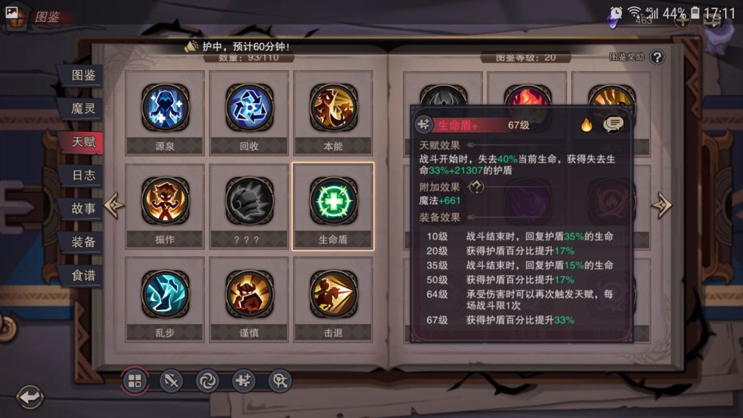生命盾:开局巨额扣血转化为巨额护盾,战后按护盾一定比例回复血量。核心卖血护盾天赋,核心中的核心,开局快节奏卖血又有巨盾防暴毙,至于血量,只要你盾不破,在战后又能回复上去。