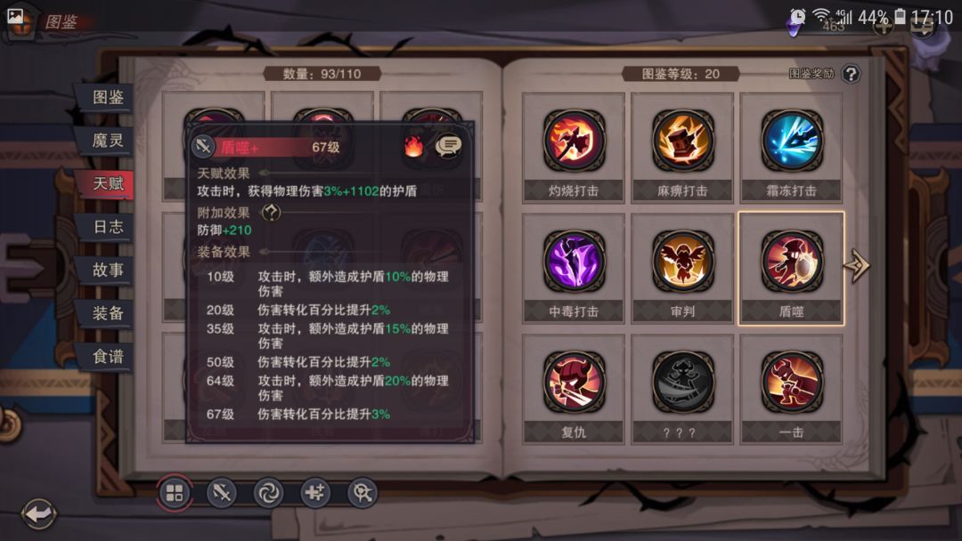 下图为日常使用天赋与技能