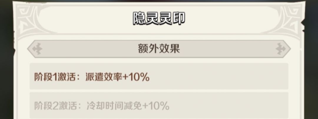 2和4灵印一星属性,有派遣效率加10%属性,推荐庭院派遣中的伙伴都把2和4灵印激活一星属性。