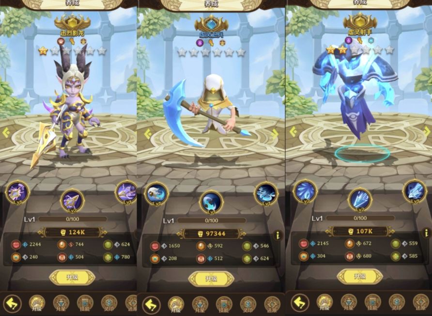 第二主站位的伙伴还是全部灵印2星,剩下的看自己资源吧。