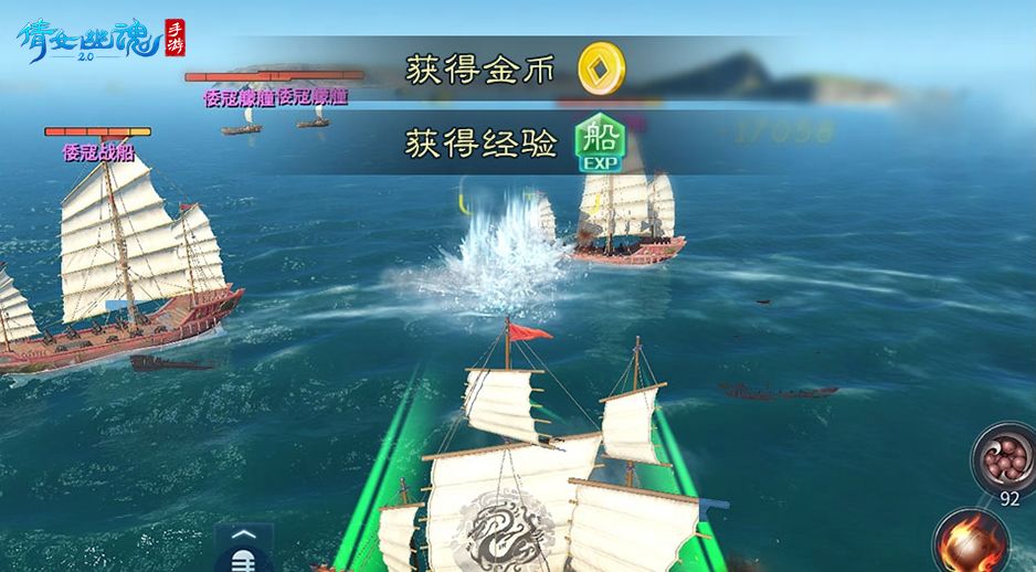 在海域中击败船只和怪物可获得金币和战船经验,战船升级后会更加强大。击败其它玩家战船可以夺取其部分金币。