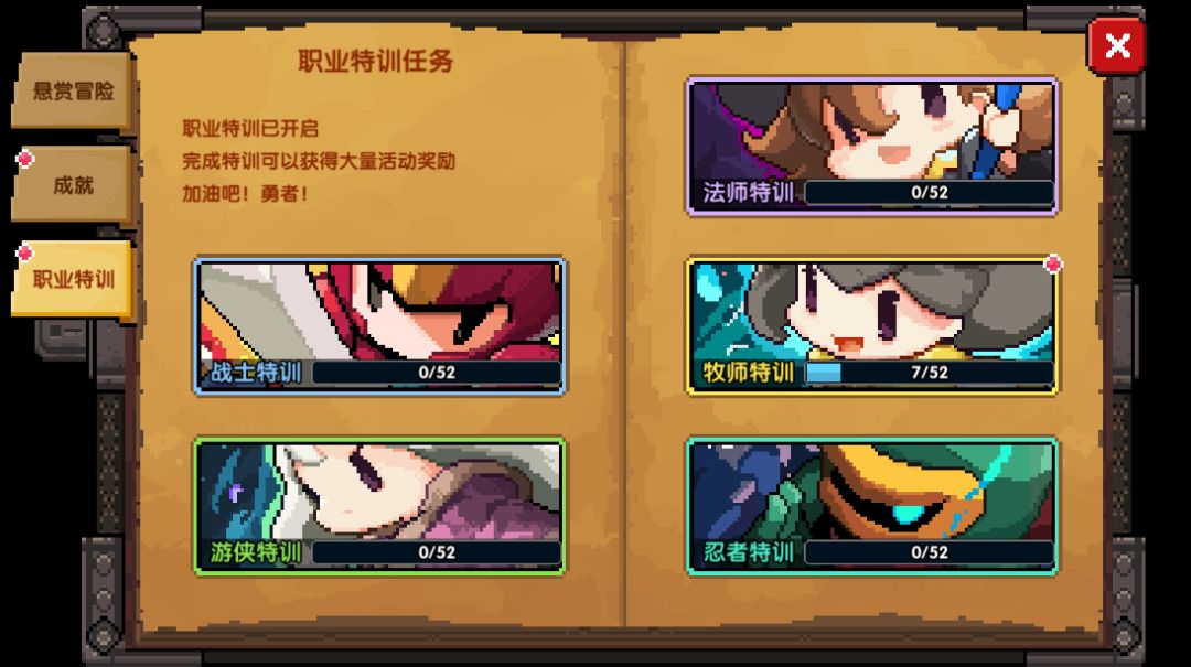 Ps: 曾已开启特训的勇者,对应的导师职业也会出现在特训任务里。