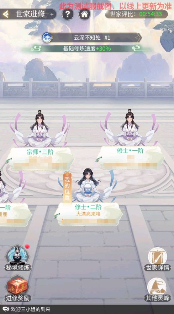 世家进修是同一个世家的成员一起进修每间隔一段时间世家内会进行评比根据境界对应的名次将划分至不同的进修之地