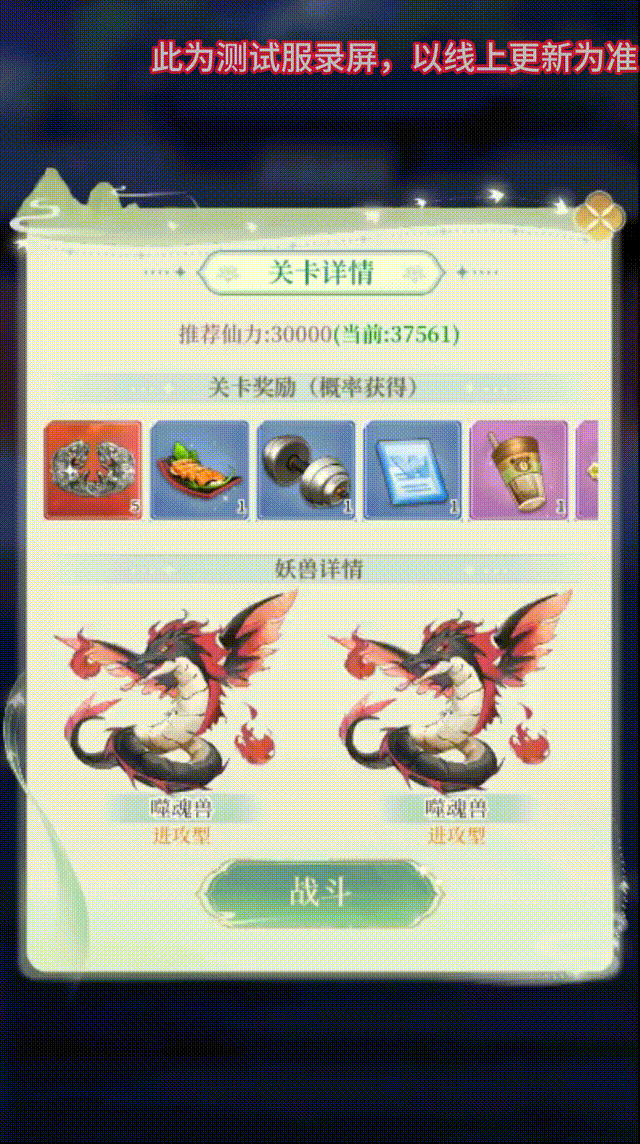 妖兽出没:秘境中会遭遇不同的妖兽,打败妖兽会获得奖励。战斗中自己的属性和境界、装备的法宝相关联。