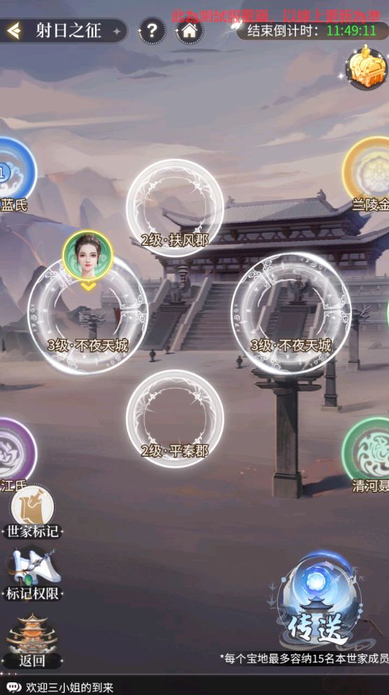 系统会将参与的区服随机分为四个世家在整个活动中将以世家成员身份参与活动