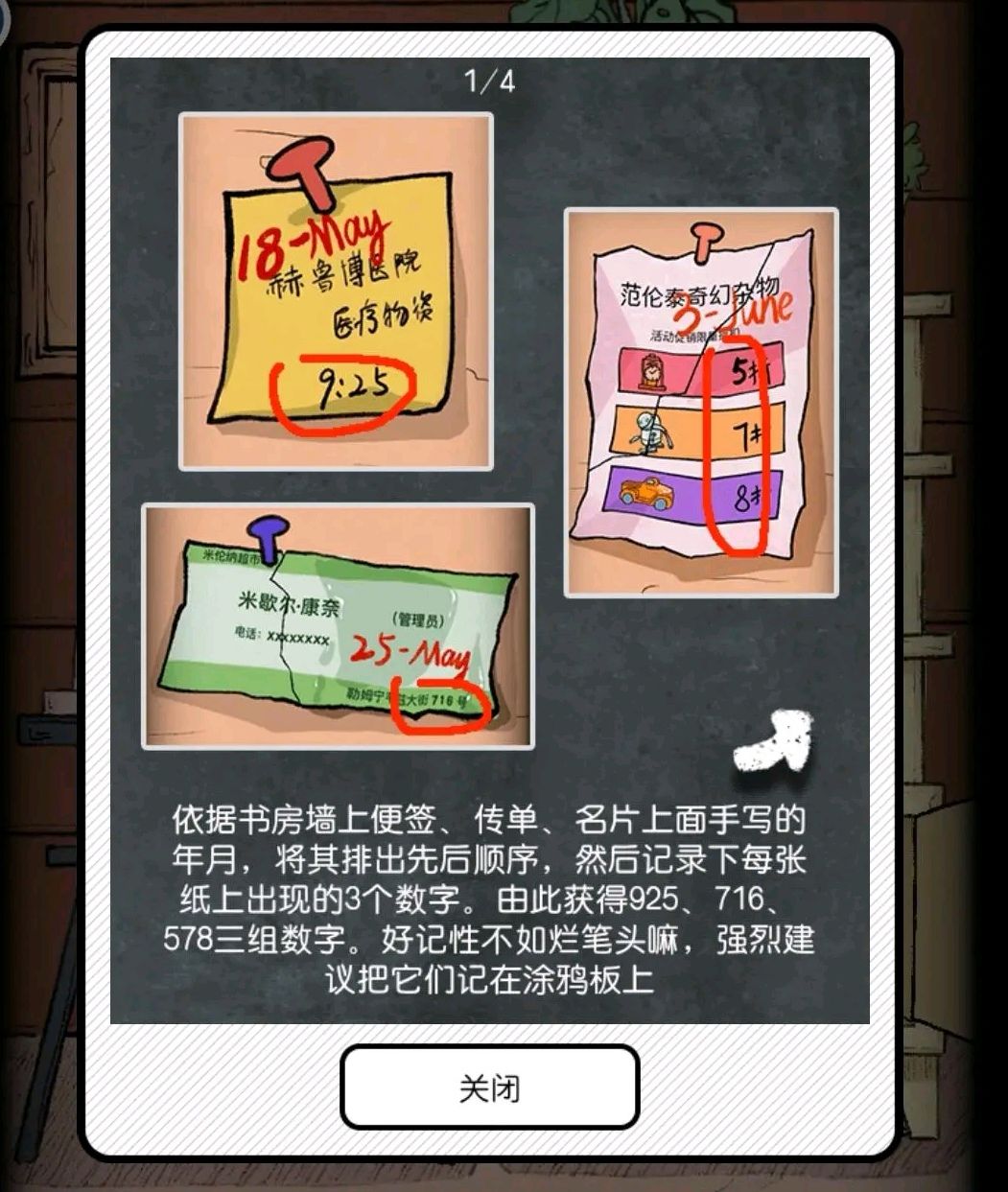 将点燃的蜡烛将点燃的蜡烛放在蜡拖上,在将空罐头放上,得到两个古罗马数字(竖着从左向右看:IX、XV),并通过柜子下面的古罗马数字表得到密码915