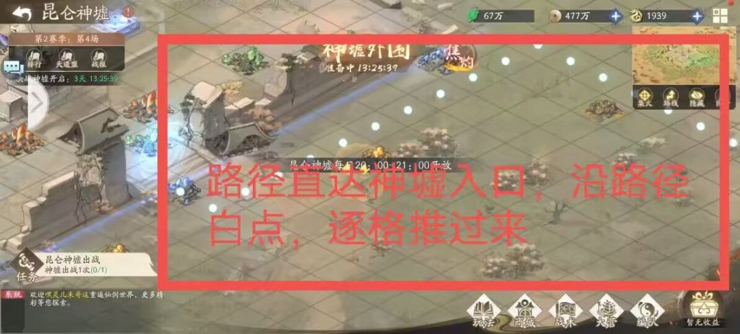 ②在周二没能占有神墟入口的仙盟,可在周三通过破碎的神墟墙角推进神墟内围。