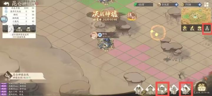 6.逐格推动:大本营是仙盟的初始领地,其他每一方格代表一块领地。原则上,只有与我方领地相邻的领地,打下后,方可成为我方新领地;与我方不相邻的,打下后,仍然是在野领地,相当浪费宝贵的行军令。正确打法之一:沿着路径,从与大本营相连的那块领地开打,逐格推进,迅速直抵神墟入口,并占领它,为进入神墟内围做准备。