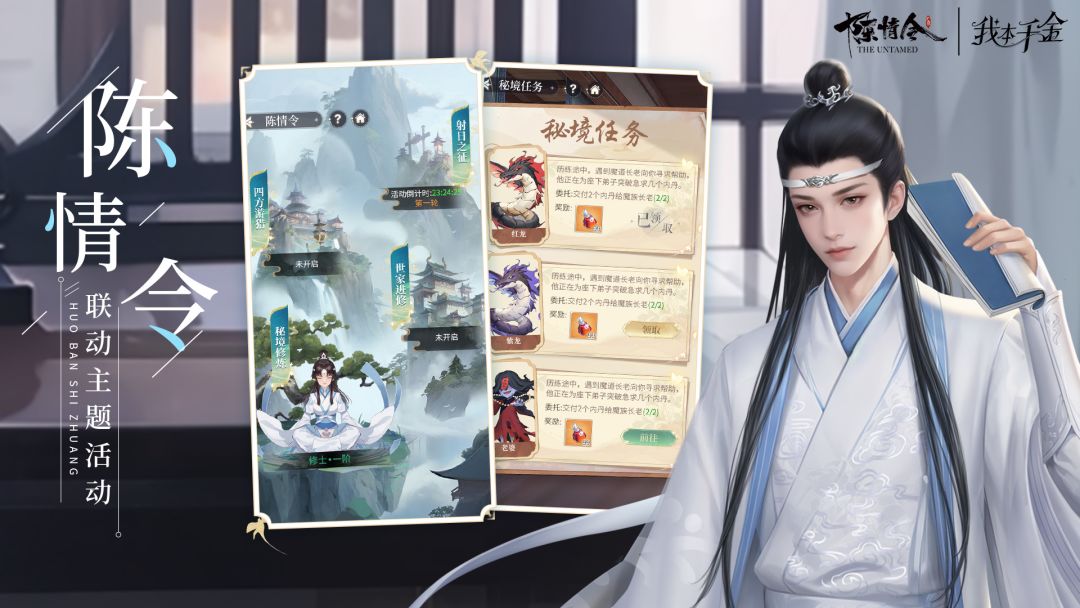 「陈情令」主题系列活动主要包括:秘境修炼、四方游猎、世家进修和射日之征。