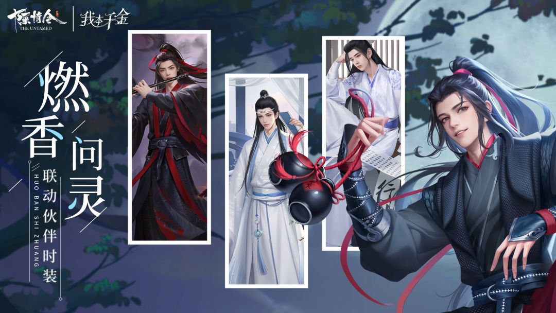 关于那年夏天,「忘羡之交」的记忆碎片开始聚齐,逐渐形成了一幕幕经典的画面:晃悠悠骑着小毛驴用苹果钓“小苹果”的魏无羡,因触犯家规被罚抄书的魏无羡,避尘绝影、一眼万年的蓝忘机……通过「燃香问灵」活动,各位三小姐可以收集电视剧同款时装,解锁更多经典剧情!