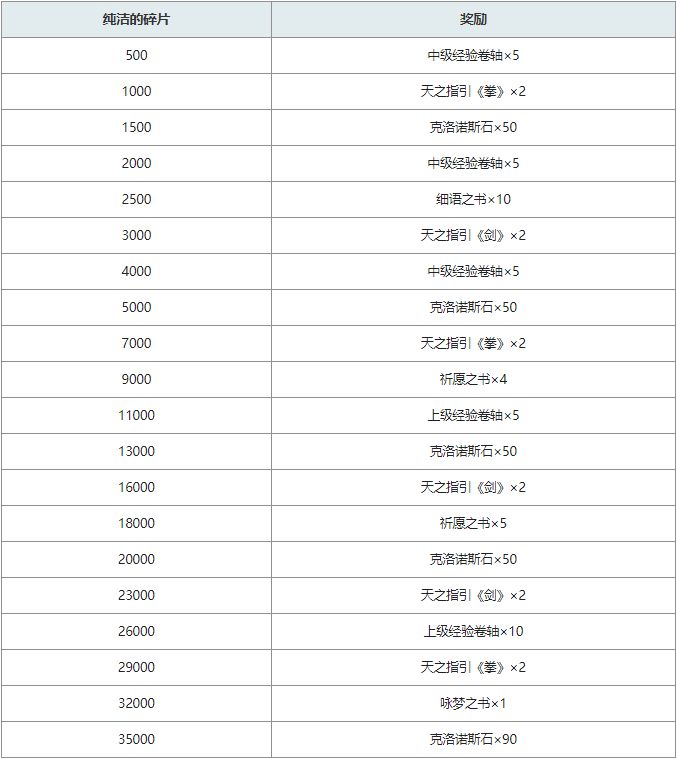 2、通过采集点、击败BOSS收集“纯洁的碎片”,并获得收集奖励。